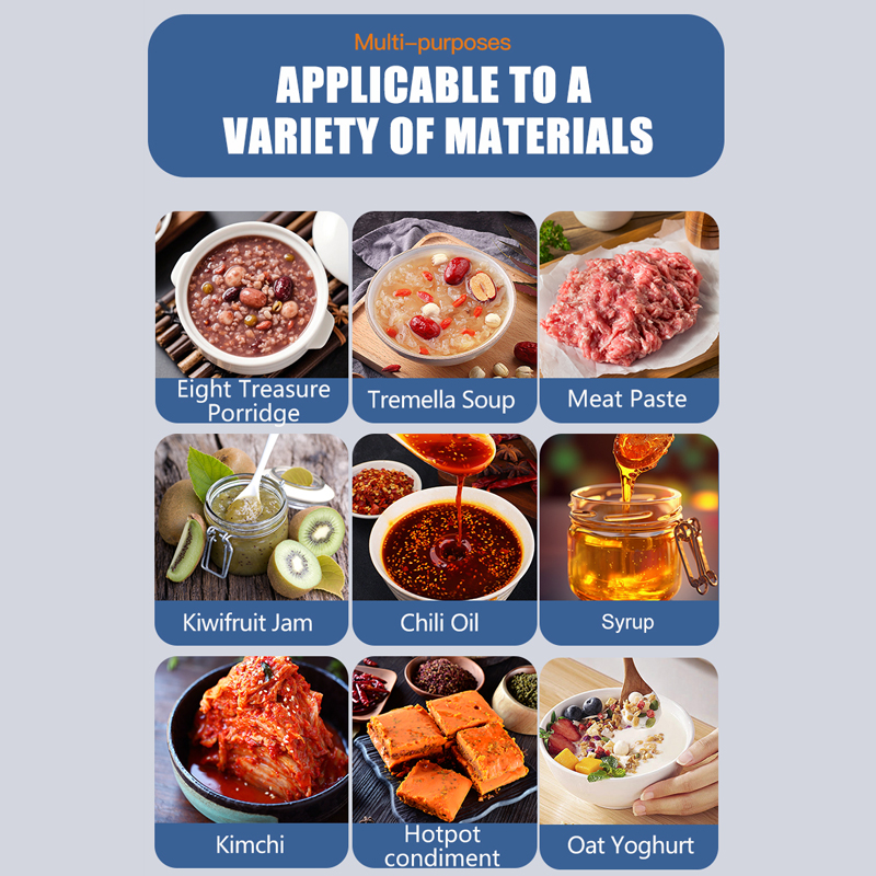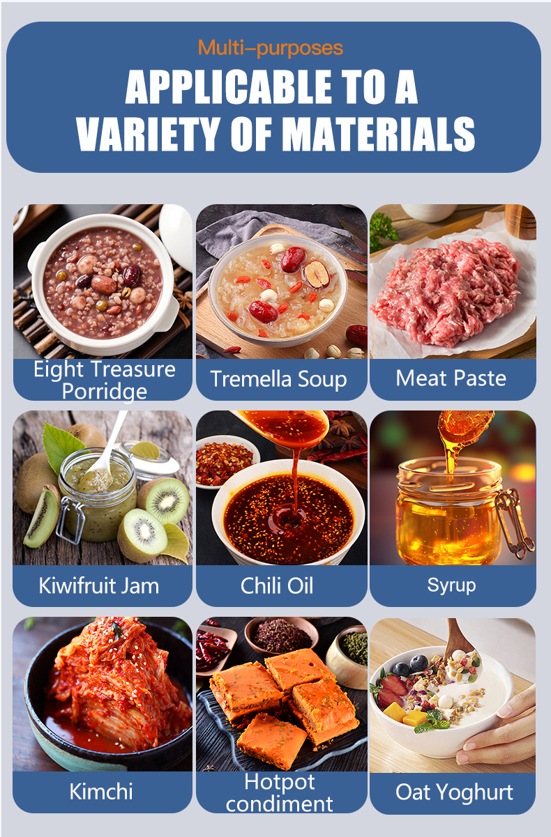 2. High viscosity materials, such as minced meat, honey, syrup, etc