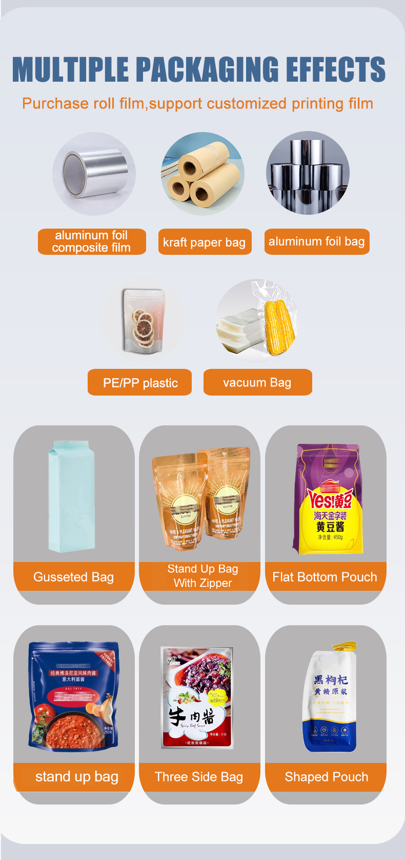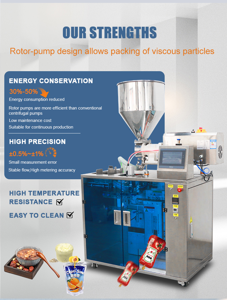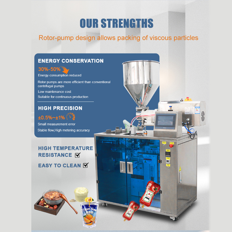1. The paste liquid material contains particles, and we do not want the particles to be crushed during the packaging process,For example, Eight Treasure Porridge, Kimchi, Hotpot condiment, drinks with fruit pulp, etc.