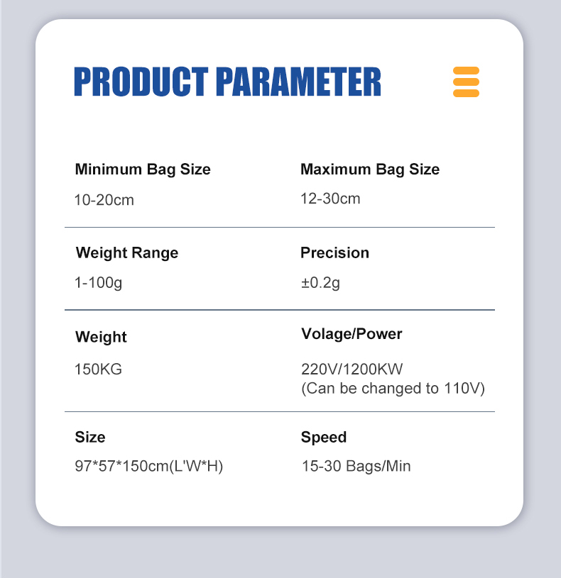 | 150kg | 10-15(bag/min) | 97*57*180cm(l*w*h) |