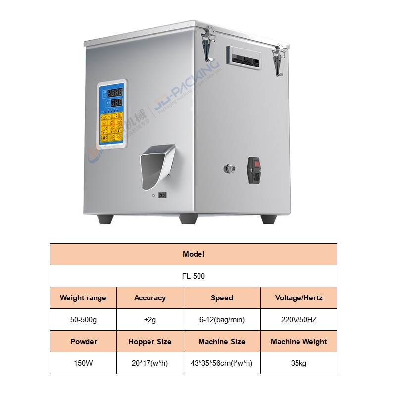 The 200g rotary filling machine produced by JD is suitable for quantitative weighing and filling of dry products, hardware accessories, electronic components, screws and nuts, dates and longans, black tea and green tea, white tea and black tea, scented tea, long strip shape, block, irregular and other materials