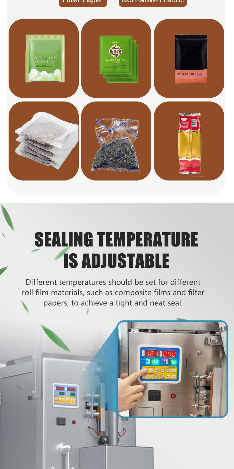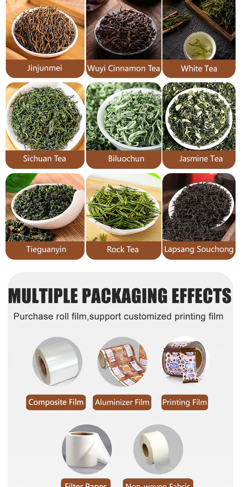 1.Applicable to various tea leaf shapes: long strips, granules, and powder—all can be packaged with this machine.