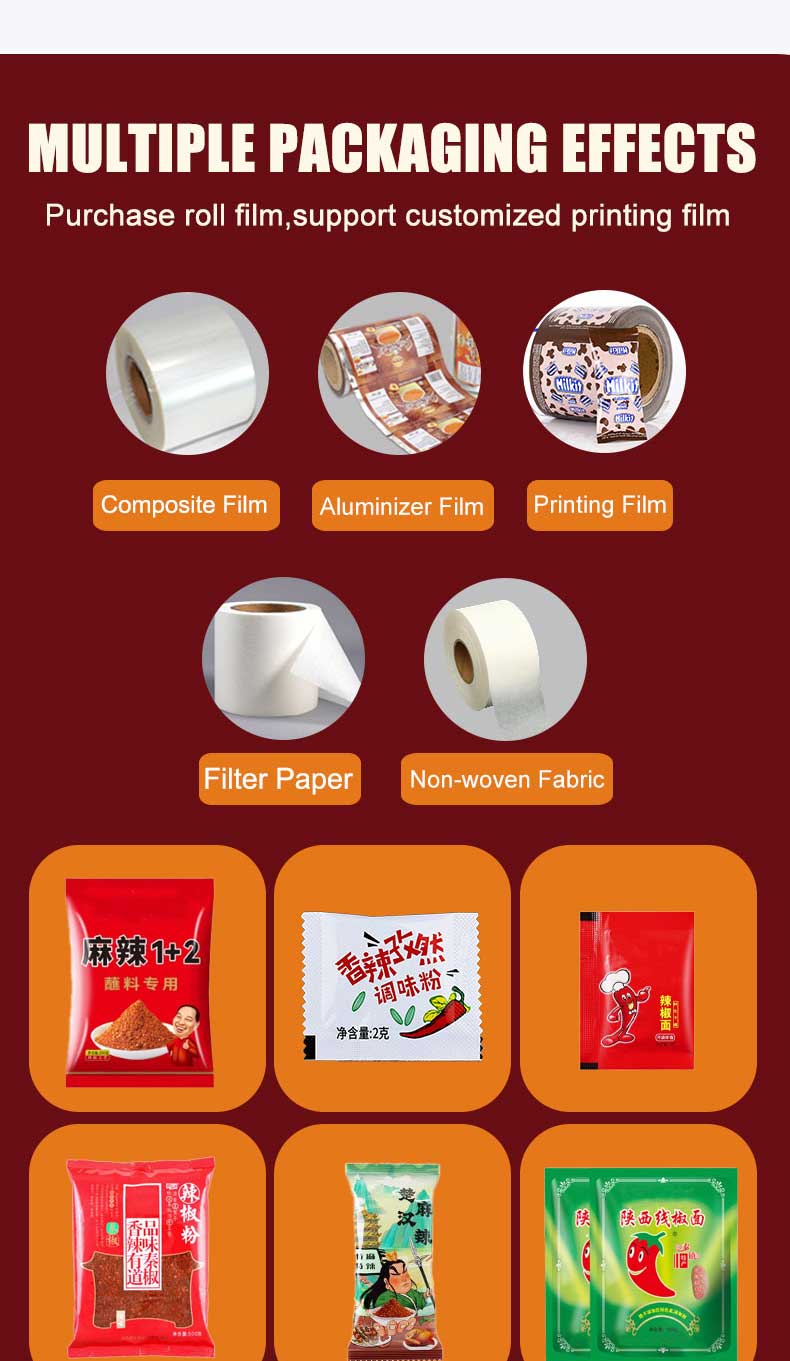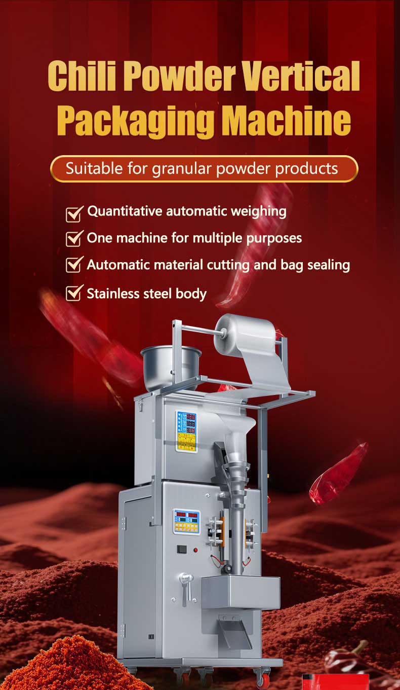 1. Fully automated packaging machine, high efficiency, tightly sealed packaging to prevent chili powder from getting damp and clumping