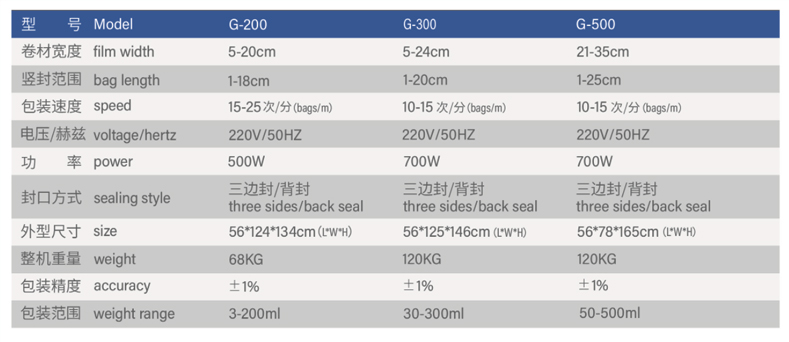 | 1-18cm | 15-25(bag/min) | back seal / three side seal |
