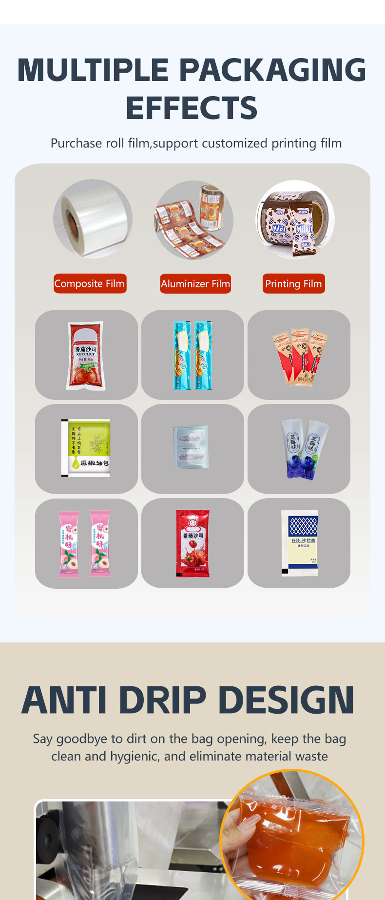 1. Anti-drip design prevents messiness on the bag mouth, avoiding aesthetic issues and material waste.