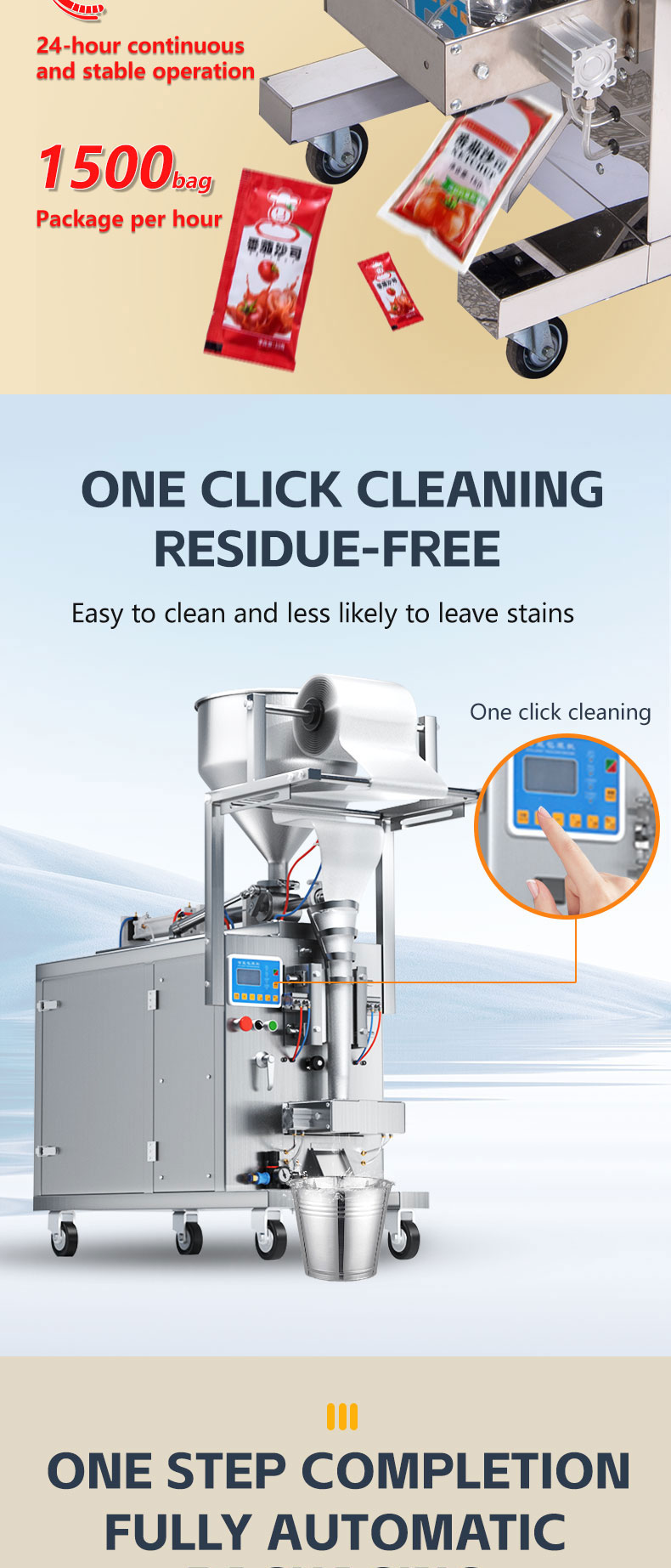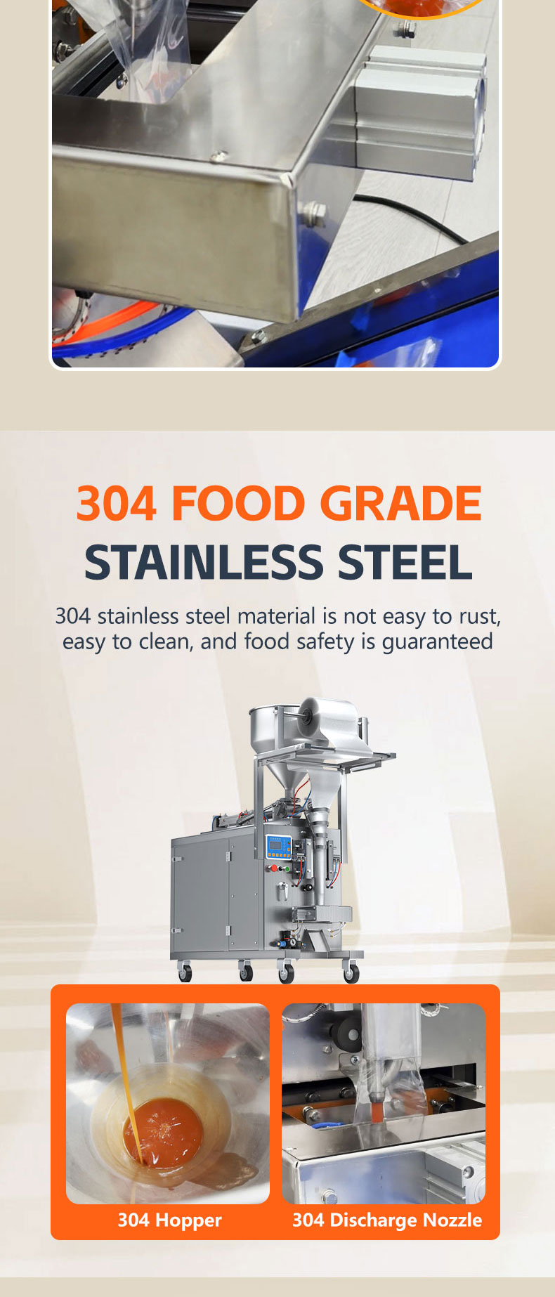 2. Parts in contact with ketchup are made of 304 food-grade stainless steel.