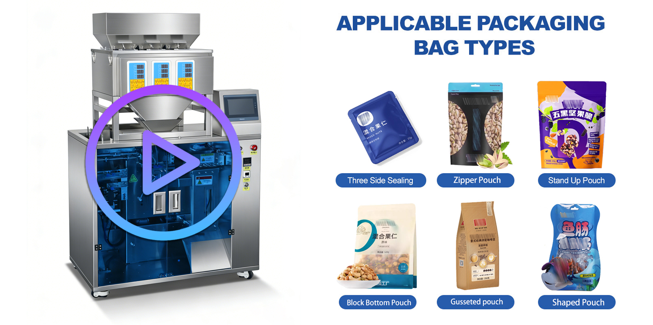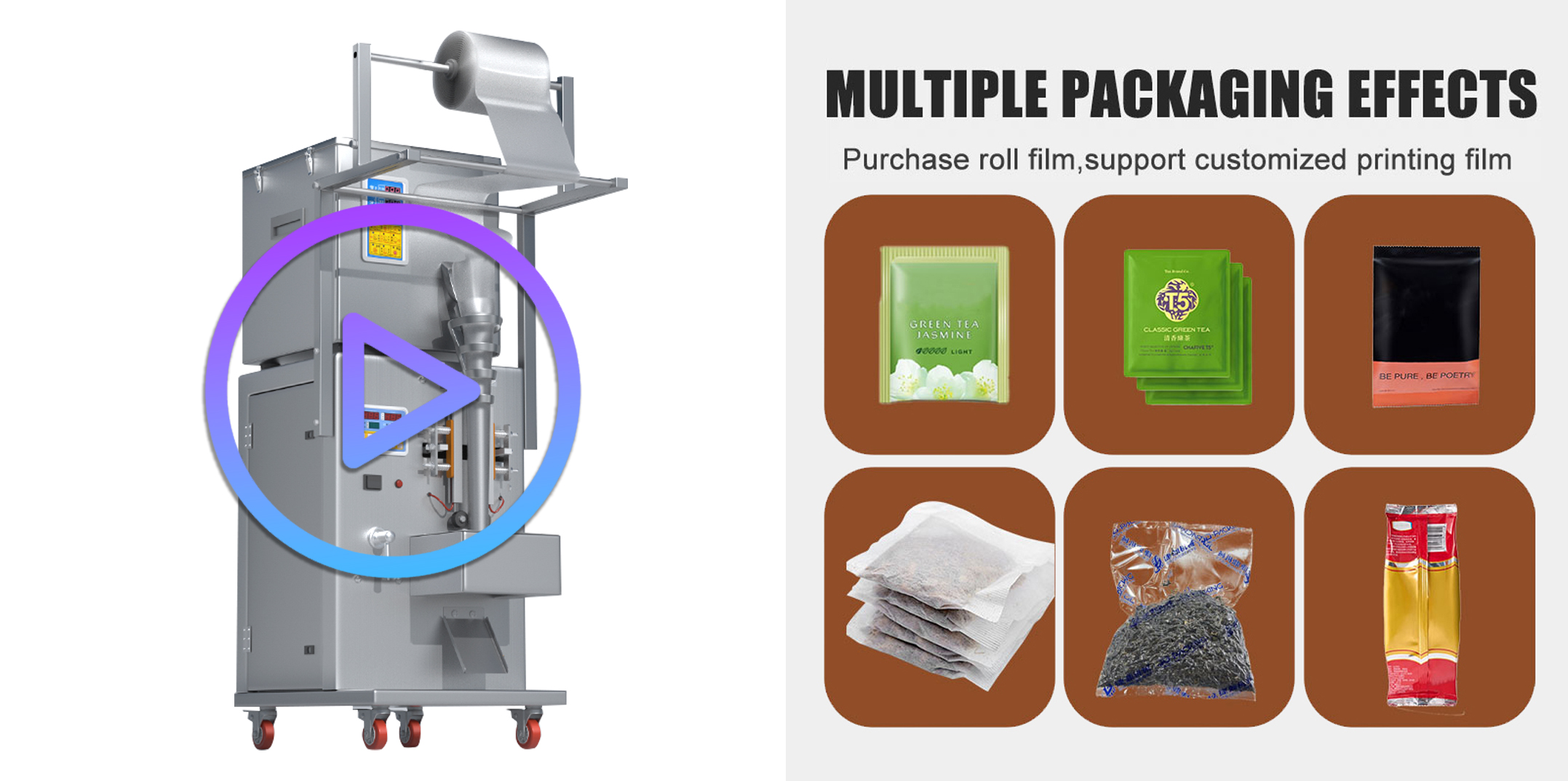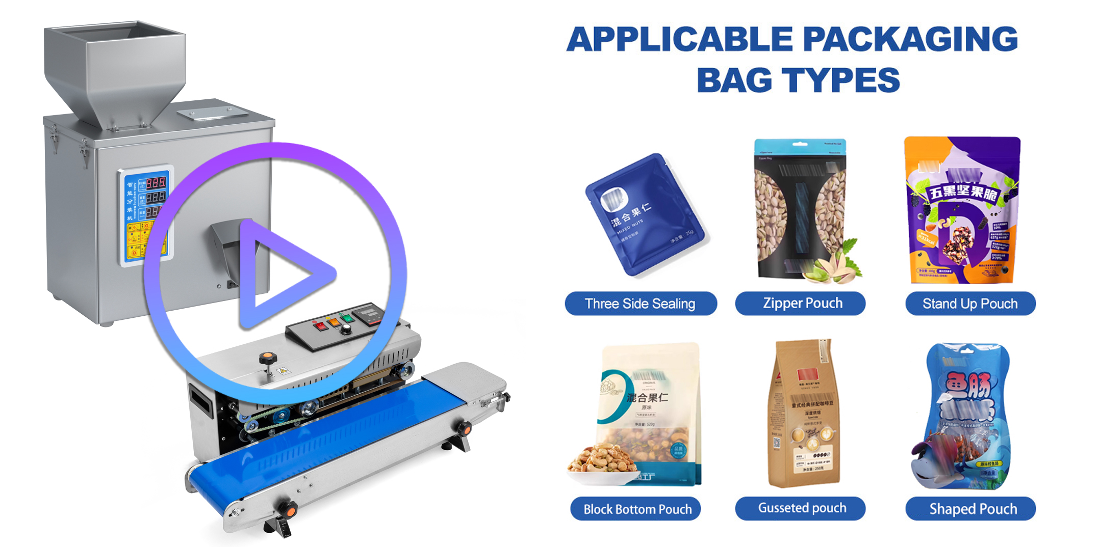 ✅ Maximum Flexibility: Compatible with all pre-made bag types (stand-up, zipper, flat pouch, eight-side seal, gusseted, shaped bags, etc.).