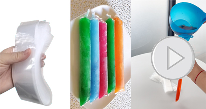 Purchase premade bags, manually fill them, and then tie a knot to complete the packaging (refer to the video below for details). This method of making ice pops has low costs, but it is slow, and the packaging may not be tight, leading to leaks. The capacity of each product may vary. It is suitable for individual entrepreneurs, small family workshops, street vendors, and similar sellers.
