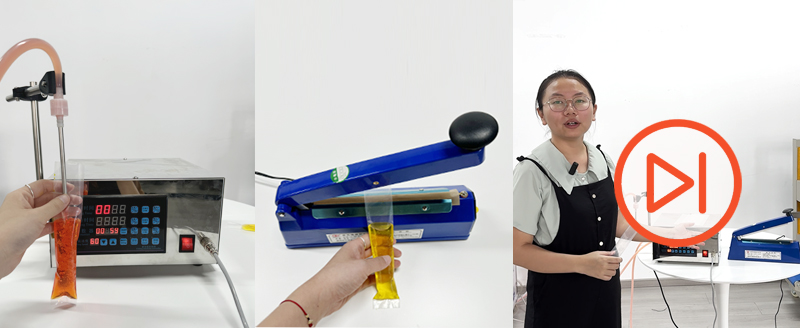 To ensure consistent filling volume for each ice pop, merchants often combine a semi-automatic filling machine with a manual heat sealer. They purchase pre-cut finished bags and use the semi-automatic filling machine for quantitative filling (refer to the video below for details). This ensures each ice pop has the same length and weight, with more aesthetically pleasing packaging, thereby enhancing brand image. However, manual operations are prone to contamination, posing high food safety risks. In the long term, rising labor costs and management difficulties remain challenges. This method is suitable for small stores, mini supermarkets, and similar sellers.